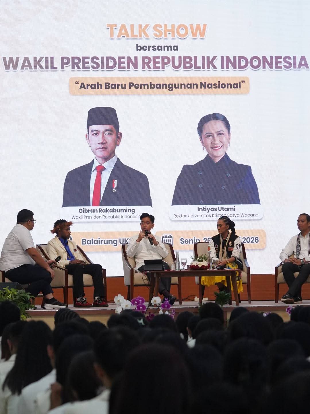 Salatiga|Mediacakranews.com-Wakil Presiden Republik Indonesia, Gibran Rakabuming Raka, kembali berkunjung ke Kota Salatiga untuk memberikan kuliah umum di Balairung Universitas Kristen Satya Wacana (UKSW), Senin (26/01/2026). Kuliah umum tersebut mengusung tema “Arah Baru Pembangunan Papua”.