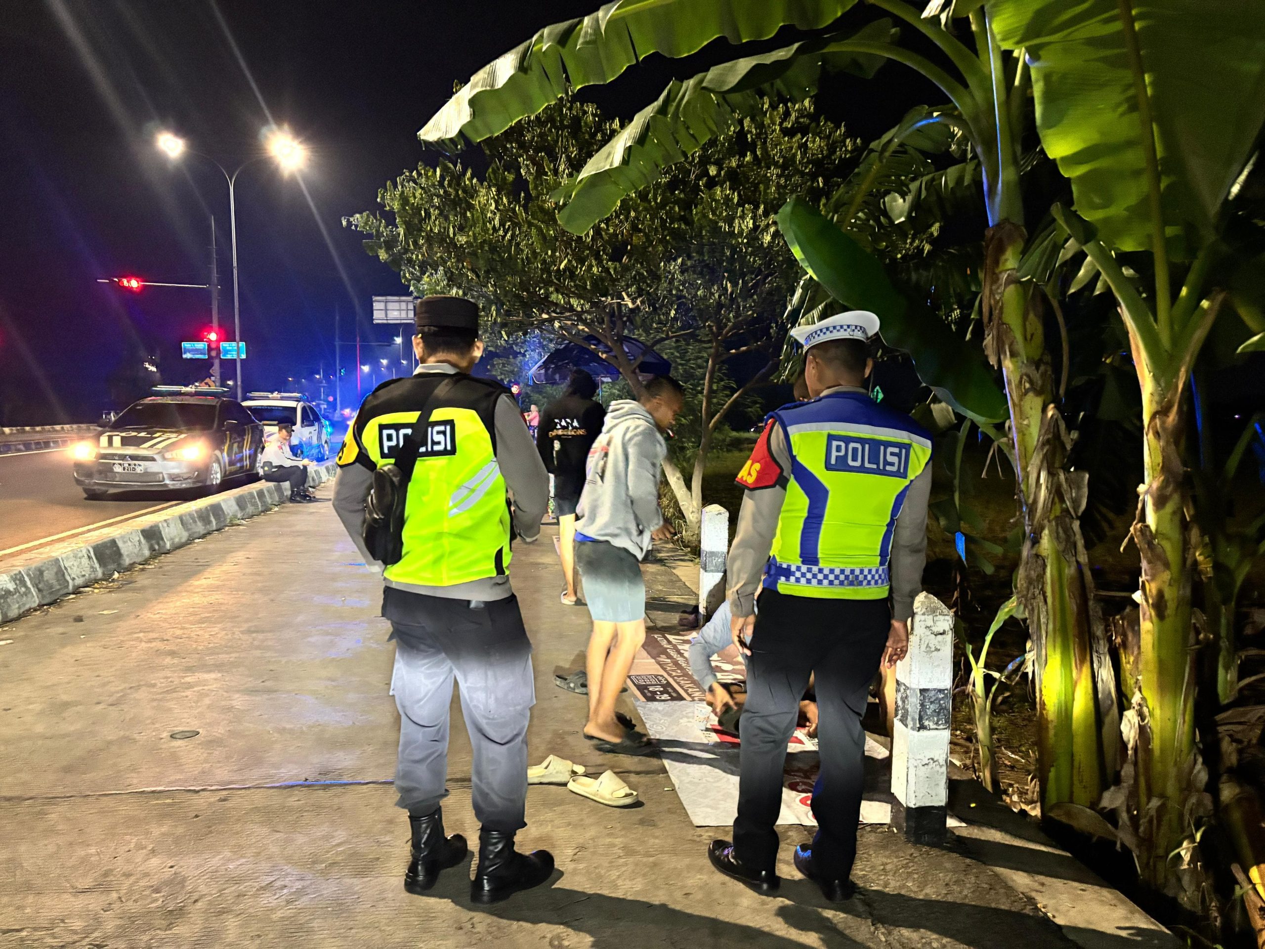 Dalam upaya menjaga Kamseltibcarlantas, tim patroli turut melakukan pencegahan aksi balap liar di kawasan Exit Tol Setono yang kerap menjadi titik keramaian pada malam akhir pekan.