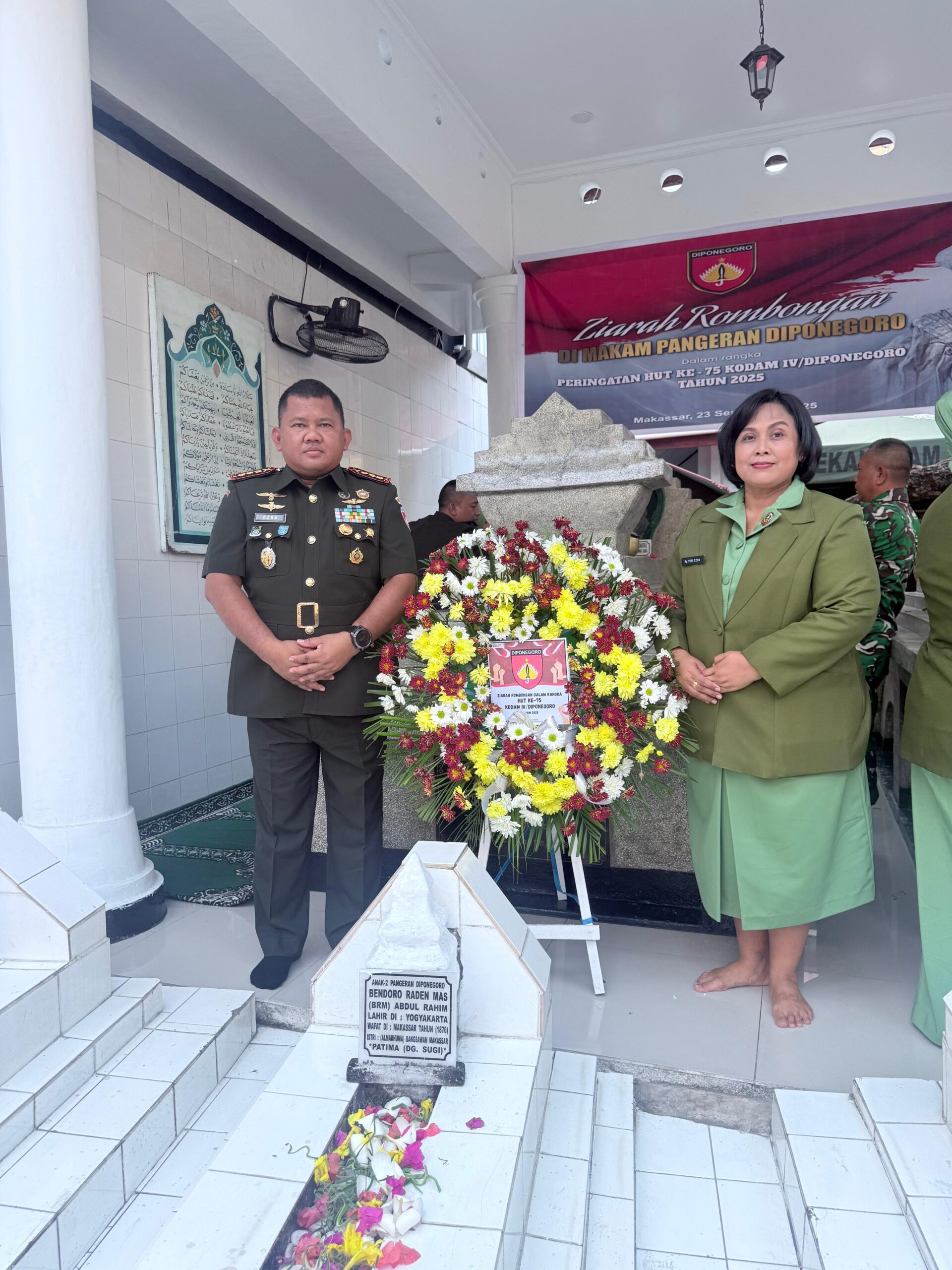 Makasar 23 September 2025 Danrem 073Makutarama bersama Bapak Pangdam IV Diponegoro beserta Rombongan memiliki kesempatan istimewa untuk melaksanakan ziarah rombongan ke Makam Pahlawan Pangeran Diponegoro. Di tempat yang sarat akan sejarah ini, tidak hanya mengenang sosok beliau sebagai Pahlawan Nasional, tetapi juga meresapi kembali semangat perjuangan yang beliau kobarkan demi kemerdekaan bangsa Indonesia.