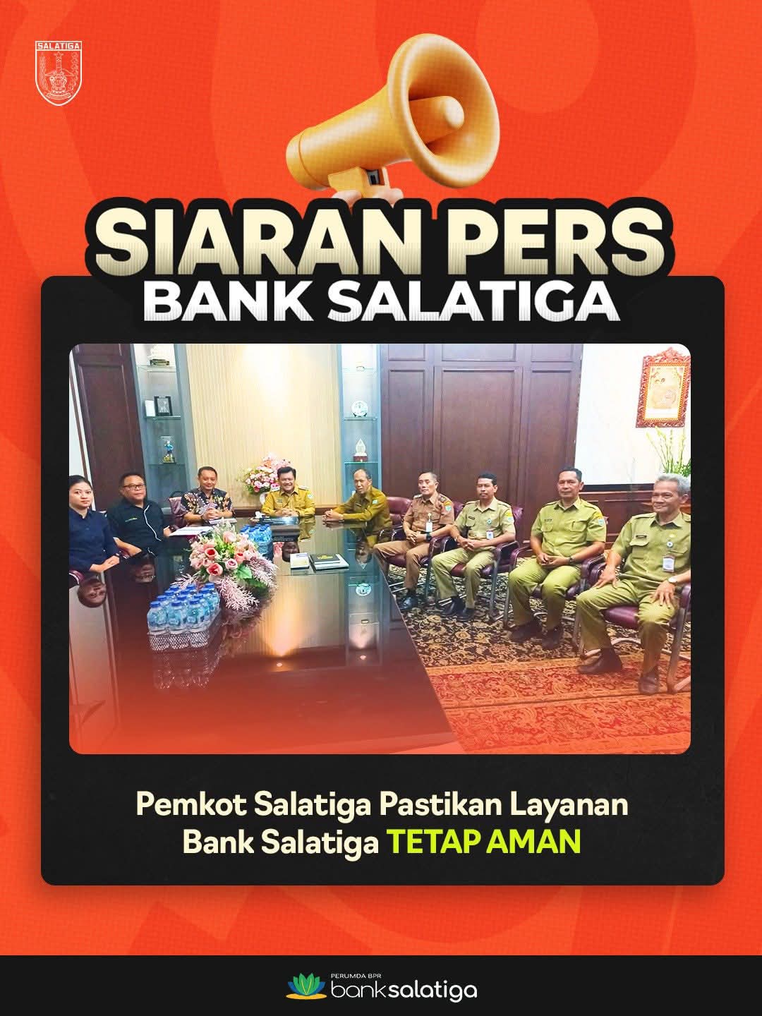 Pemerintah Kota Salatiga menegaskan bahwa operasional Bank Salatiga tetap berjalan normal dan dana nasabah dalam kondisi aman. Masyarakat diimbau tetap tenang dan tidak mudah terpengaruh informasi yang belum jelas kebenarannya. Informasi resmi hanya disampaikan melalui kanal resmi Bank Salatiga dan Pemerintah Kota Salatiga.