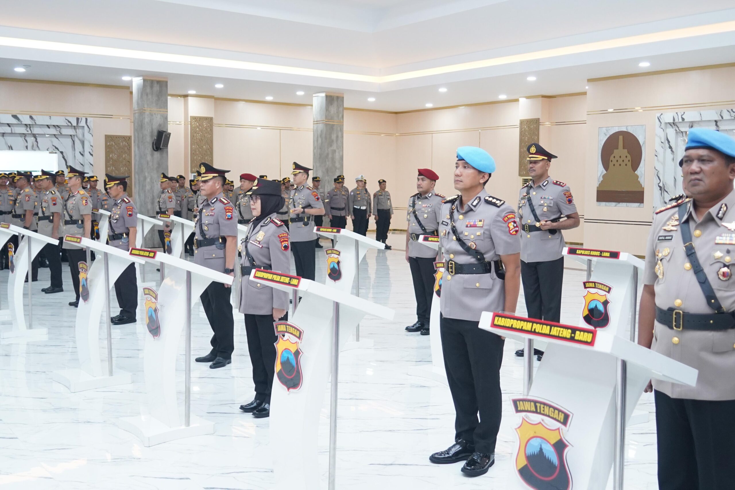 Polda Jawa Tengah kembali melaksanakan rotasi jabatan sejumlah Pejabat Utama (PJU) dan Kapolres jajaran sebagai bagian dari dinamika organisasi Polri. Sebanyak lima jabatan utama dan empat jabatan Kapolres diserah terimakan dalam prosesi serah terima jabatan (sertijab) yang digelar secara khidmat di Gedung Borobudur Polda Jateng, Kamis, (17/04/2025) pagi pukul 10.30 WIB.