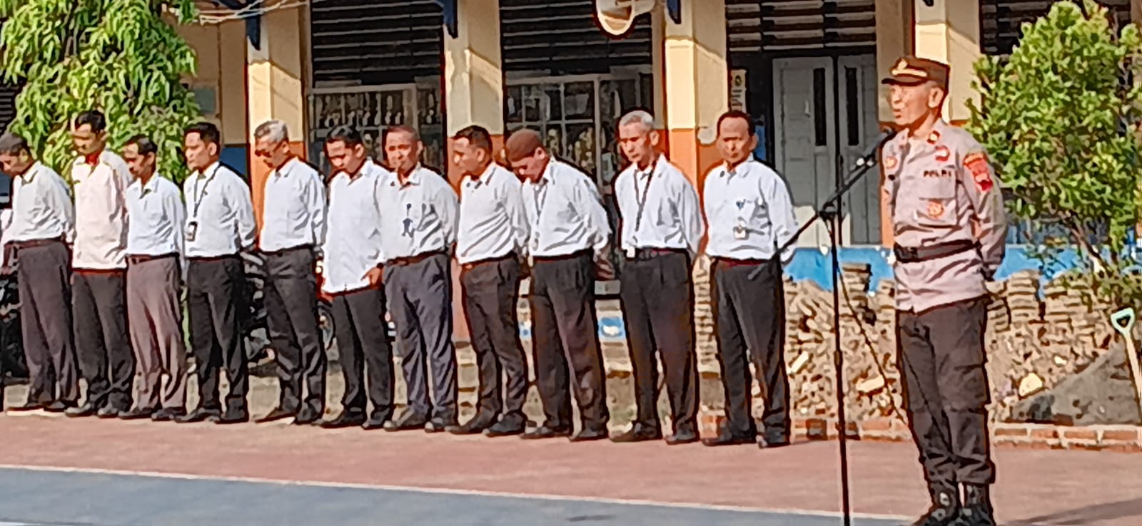 Kasat Binmas Polres Pekalongan Kota, IPTU Budi Winarso, S.H., bertindak sebagai pembina apel memberikan pesan kamtibmas kepada 460 siswa, para guru dan staf sekolah.