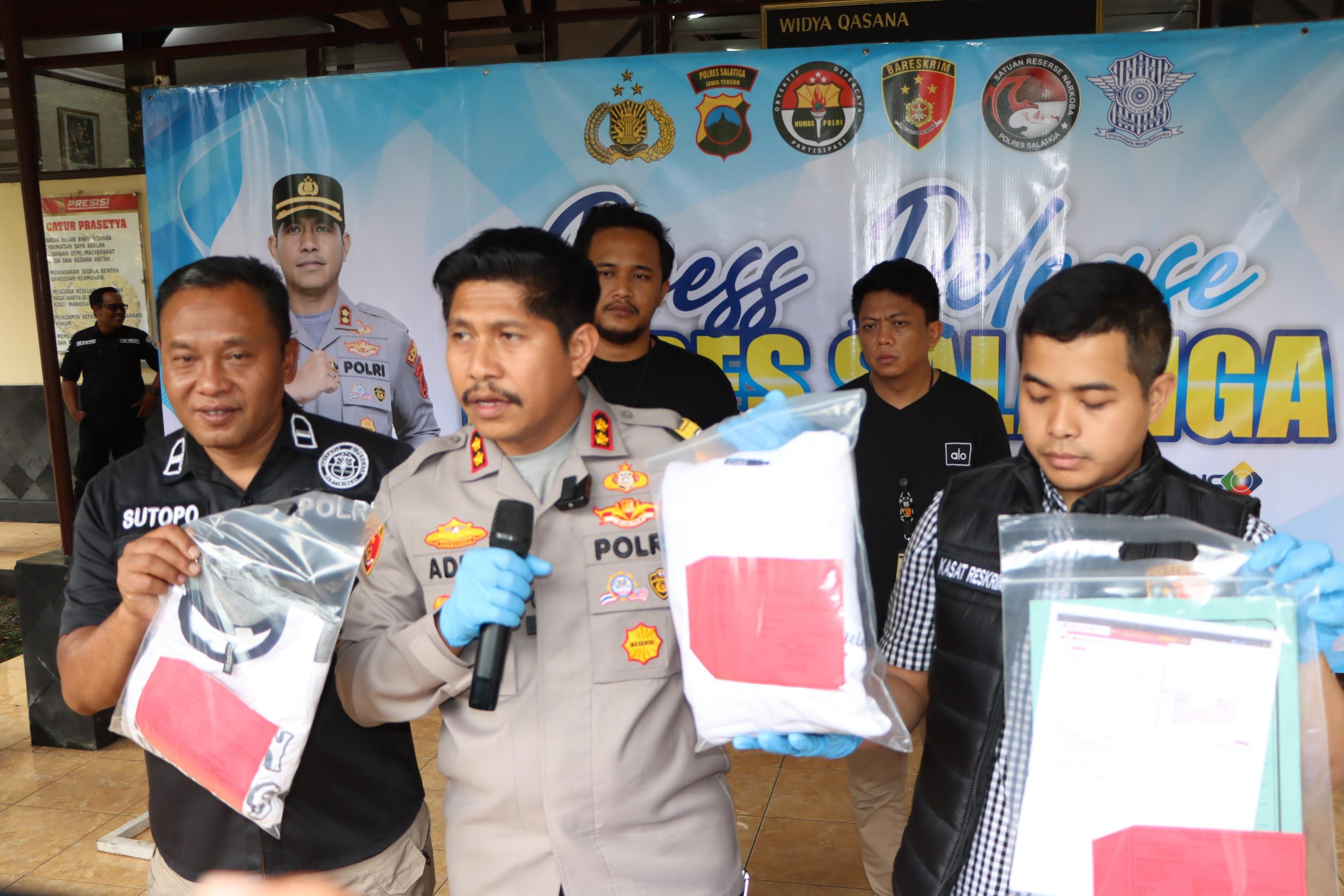 Salatiga|Mediacakranews.com- Polres Salatiga menggelar press release pengungkapan kasus tindak pidana perbuatan cabul terhadap anak pada didepan Pendopo Widya Qasana Tribrata Polres Salatiga. Kegiatan dipimpin langsung oleh Kapolres Salatiga AKBP Ade Papa Rihi, S.H., S.I.K., M.H didampingi Kasat Reskrim AKP Radytya Triatmaji Pramana, S.H., M.H., Plh. Kasi Humas Ipda Sutop, Jumat, 13/02/2026.