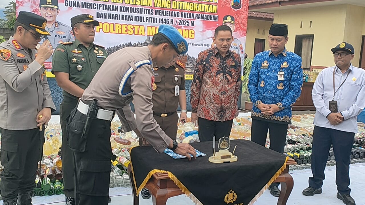 Mungkid | Mediacakranews.com-Jelang Bulan Romadhon1446 H / 2025 Polresta Magelang Pemusnahan barang bukti hasil kegiatan kepolisian yang ditingkatkan guna menciptakan kondusifitas menjelang bulan Ramadhan dan hari raya idul fitri 1446H/ 2025 M. bertempat di depan Gedung Bhayangkara Utama Polresta Magelang Senin ( 17/2/2025).
