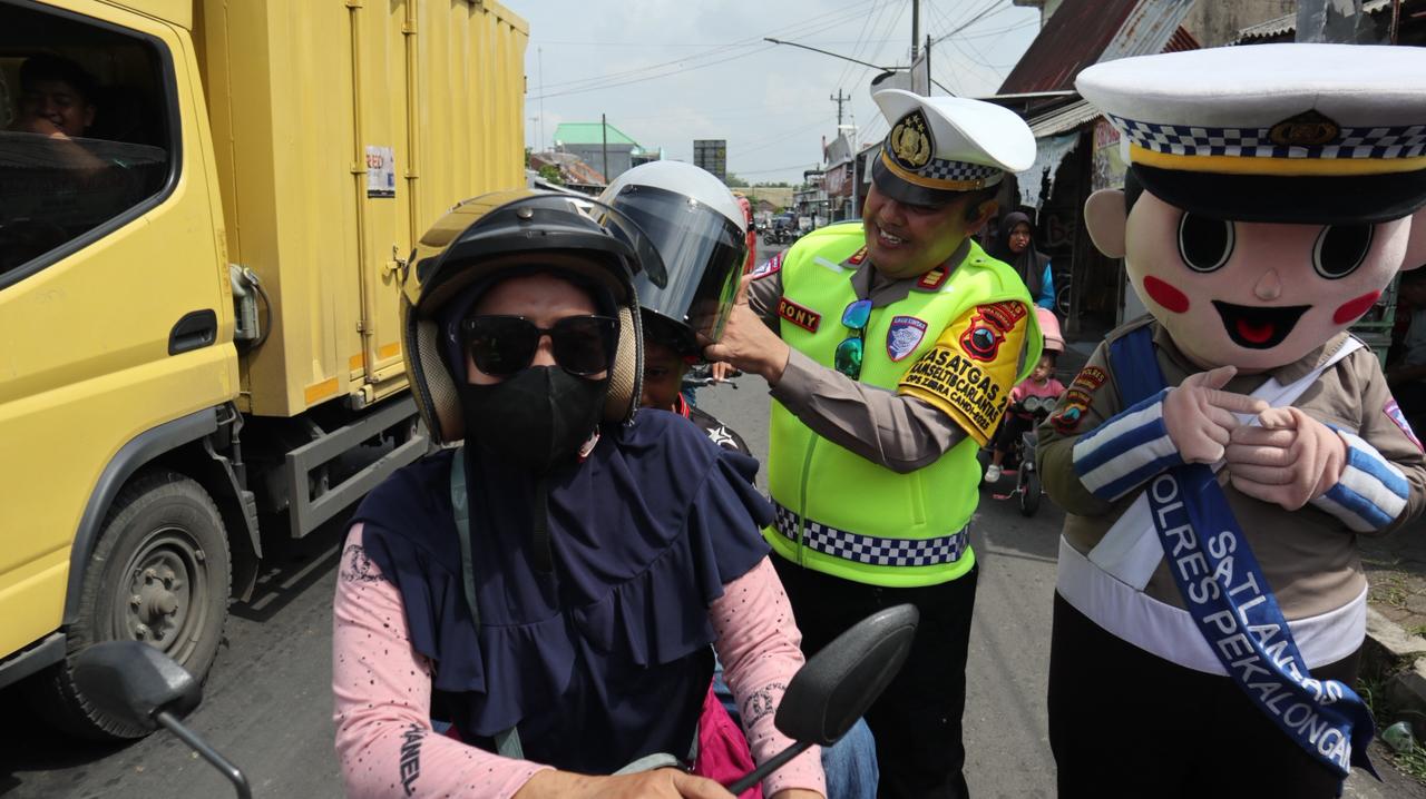 Sat Lantas Polres Pekalongan bersama Dinas Perhubungan Kabupaten Pekalongan menggelar aksi simpatik di tengah berlangsungnya Operasi Zebra Candi 2025. Alih-alih melakukan penindakan, petugas justru memberikan 50 buah helm dan paket sembako kepada masyarakat.