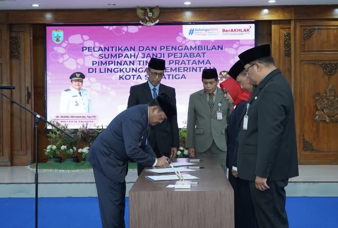 Wali Kota Salatiga, Robby Hernawan, secara langsung melantik para pejabat yang disaksikan oleh jajaran Forum Koordinasi Pimpinan Daerah (Forkopimda), Ketua TP PKK Kota Salatiga, Sekretaris Daerah, para asisten, staf ahli, kepala OPD, hingga camat dan lurah se-Kota Salatiga.