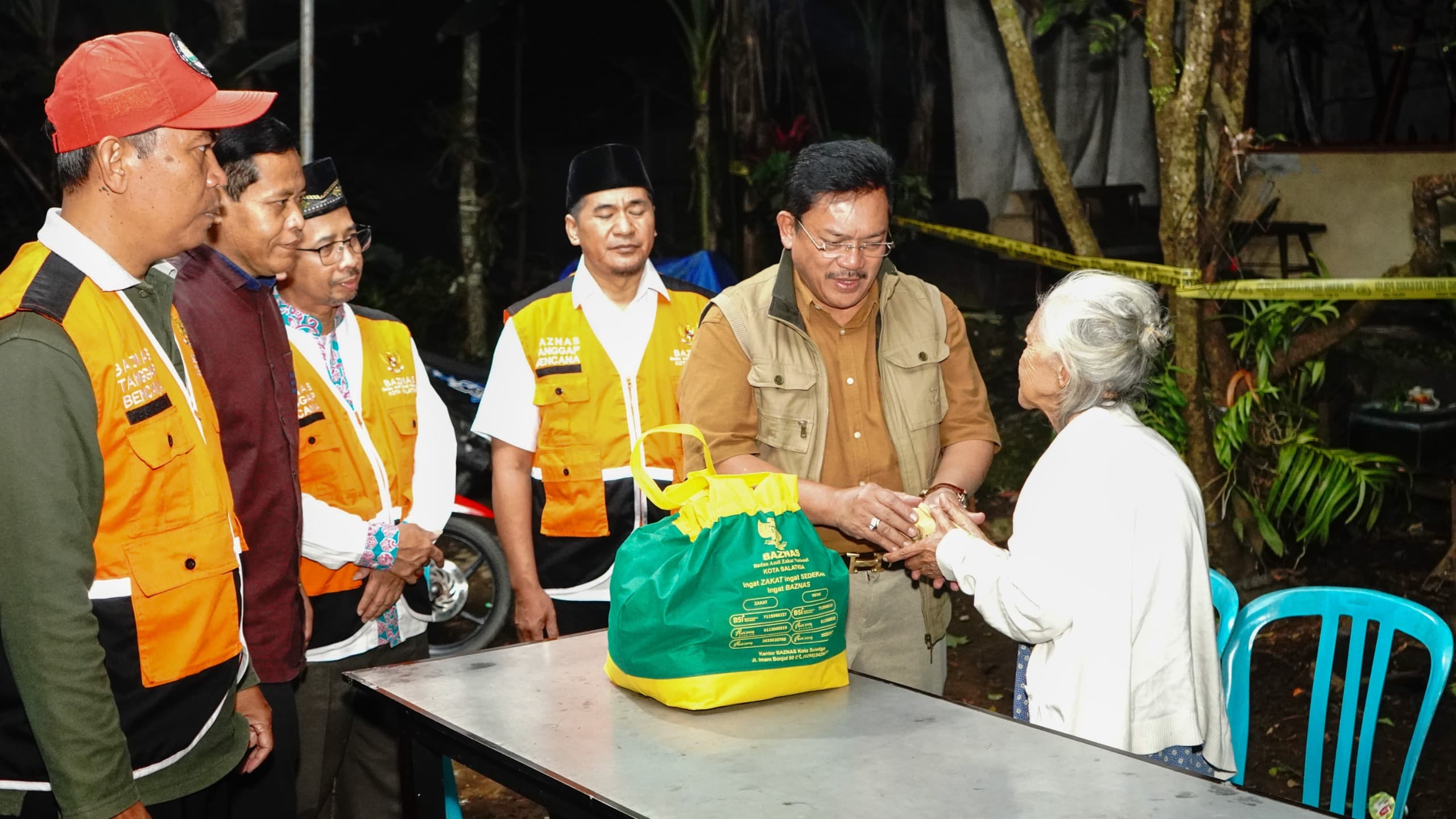 Dalam kesempatan ini, Wali Kota Salatiga menyerahkan uang santunan serta bantuan sembako.
