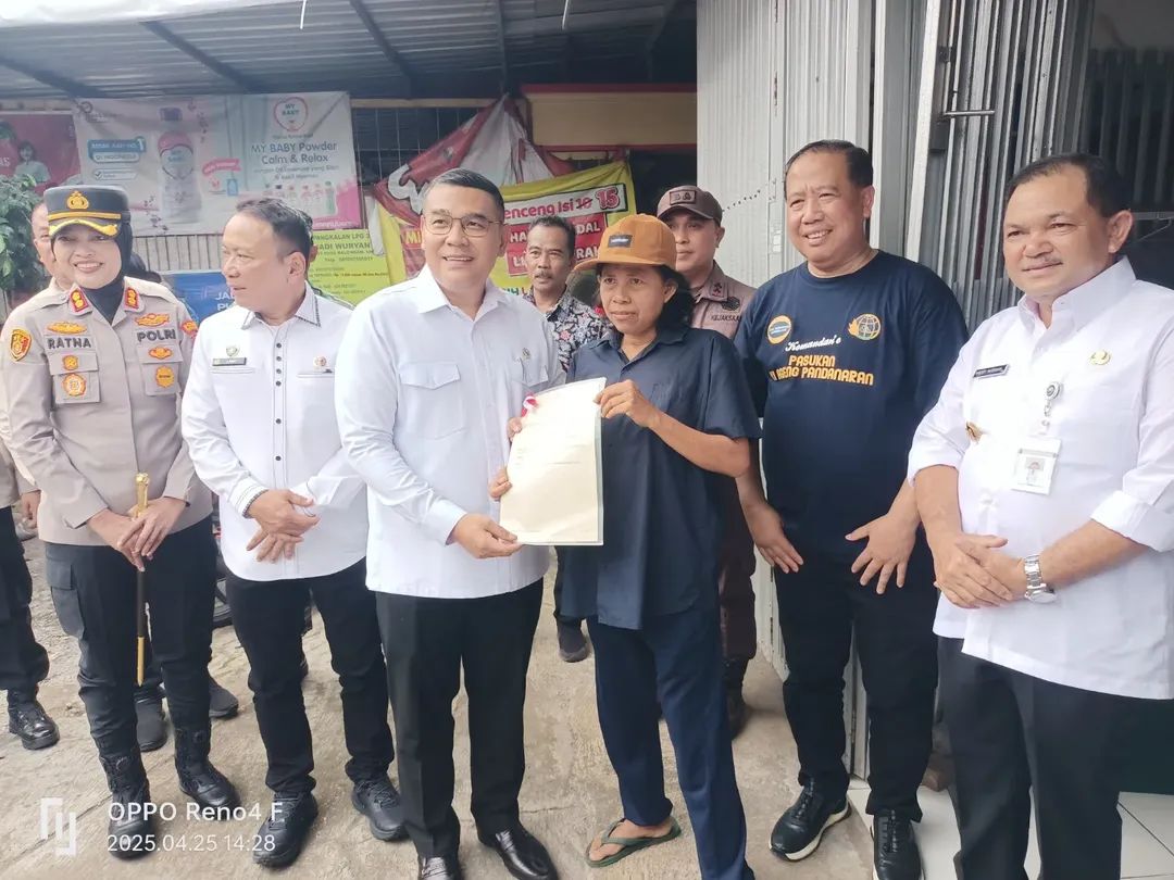 Ungaran|Mediacakranews.com-Wakil Menteri Agraria Tata Ruang / Wakil Kepala BPN Ossy Dermawan menyerahkan  sertipikat tanah hak milik elektronik kepada lima warga Dusun Kajangan, Desa Kalongan , Ungaran Timur, Kabupaten Semarang, Jumat (25/4)2025) sore .